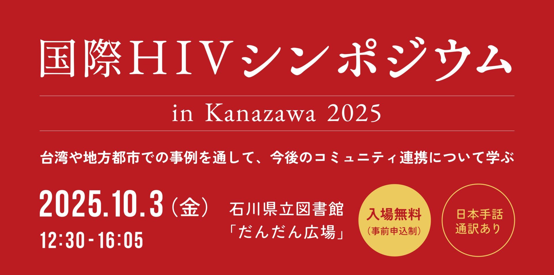 イベント【令和7年10月3日(金)】国際HIVシンポジウムin Kanazawa 2025/金沢レインボープライド